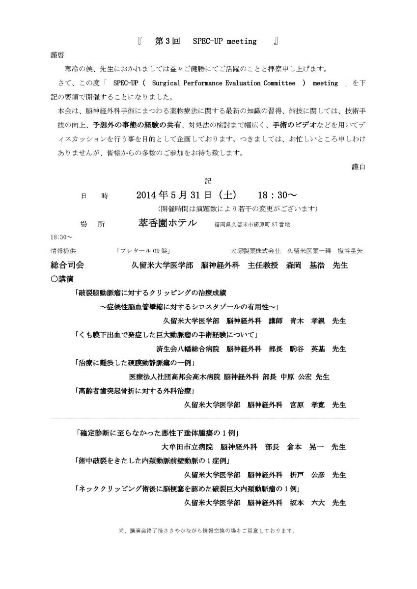 【医療従事者の方へ】5/31(土)「第3回SPEC-UP meeting」のご案内