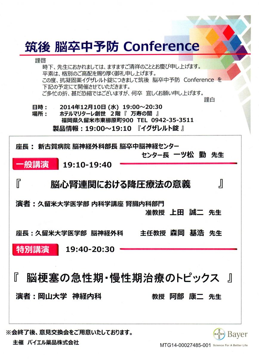 【医療従事者の方へ】12/10(水)「筑後脳卒中予防Conference」のご案内